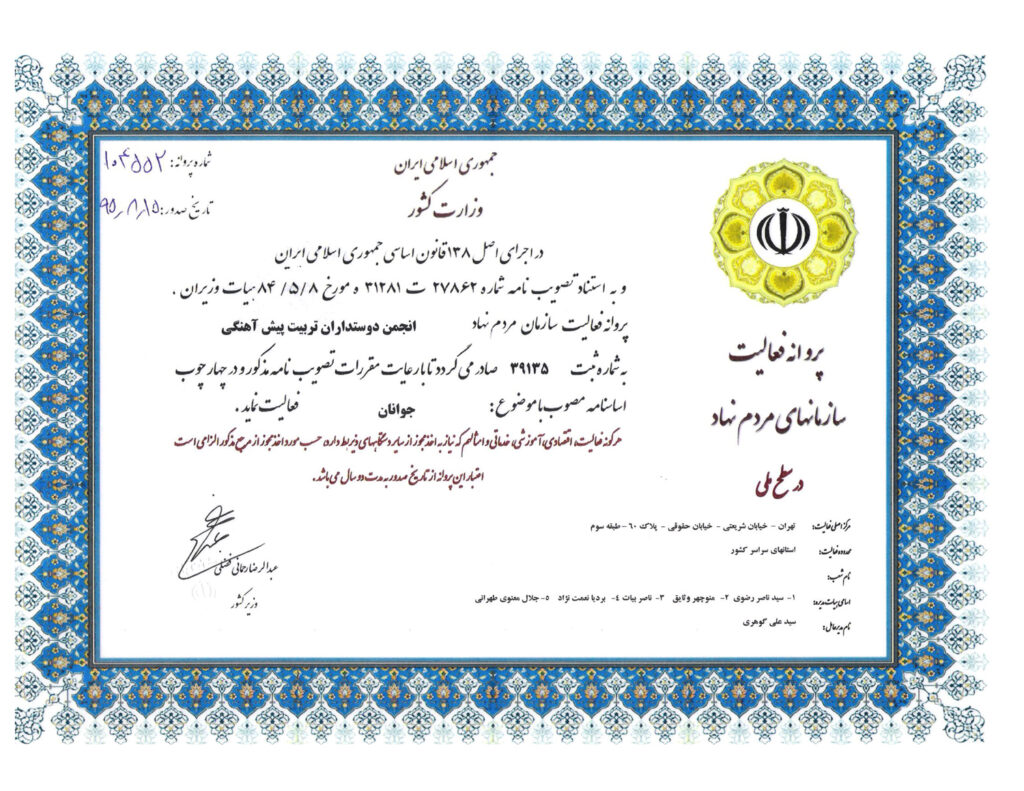 - ثبت رسمی انجمن ودریافت پروانه فعالیت ازامور سازمان های مردم نهاد وزارت کشور جمهوری اسلامی ایران